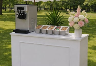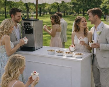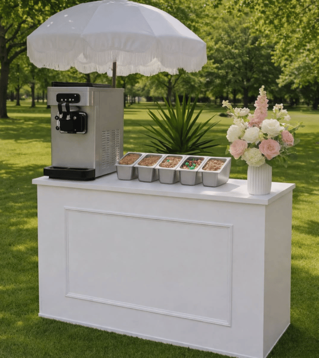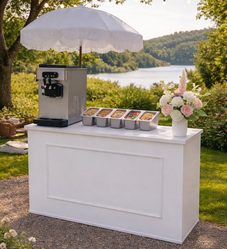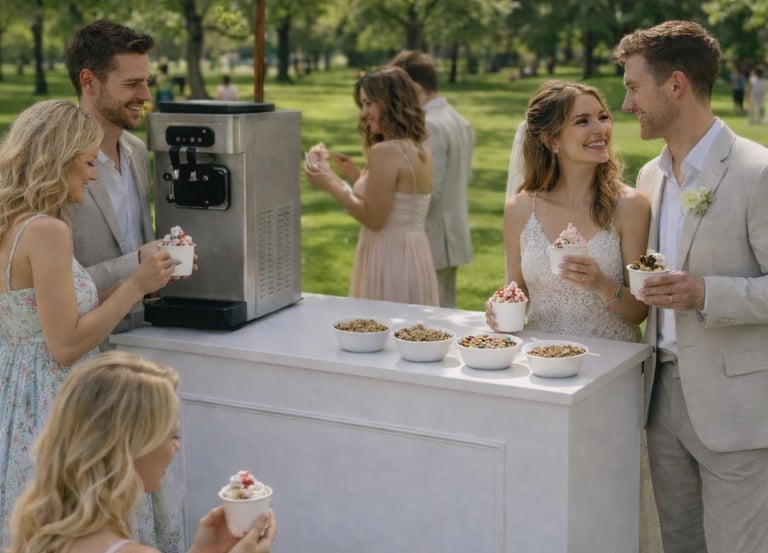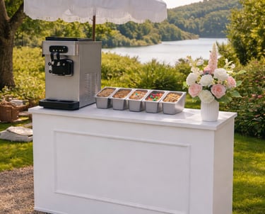 Our Frozen Yoghurt Cart brings a fun, beautifully presented dessert experience to weddings, parties and events. Designed to complement our caravan bar or shine on its own, the cart can be tailored to your celebration with frozen yoghurt, soft serve or açai, served with curated toppings and warm, professional service.